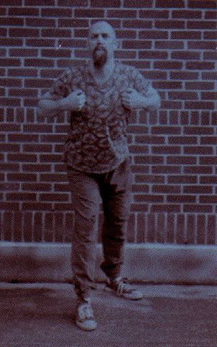 8. 1990 i was recruited by ben ellis and tres shannon to facilitate a dance class/performance troupe for their eclectic all-ages club the x-ray cafe, as part of their project to diversify their venue's activities (which included a drum jam, a quilting bee, and a women-only night). over the next year or so, the "wacko dance unit" developed a set of structured improvisations at weekly rehearsals that resulted in about 15 performances, mostly either at sunday @ 7 or in conjunction with rock shows, including some out-of-town gigs with the x-ray's travelling punk vaudeville show. as an example of the sort of pieces we mounted, in one, called "heckling", to some generally subdued musical accompaniment, one of us would appear at the front of the stage and facing the audience, launch into a solo improvisation. after a few moments, a second dancer would appear behind the first and broadly parody the moves of the first, who would then shortly move off stage and the second dancer would move forward, segueing into their own set of moves which a third dancer would then appear from behind to mock, the cycle continuing until the first dancer reappeared. all of our pieces aimed to be short, crisp, and comedic.